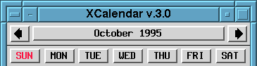 Below are some examples of what an application window might look like if you altered the Style entry for that application. You'll find a full discussion of the various Style options back at the LG main page. These are included to give you an idea of what things look like on the system that I'm using. I've used the very nice little program xcalendar as an example and simply altered the styles entry for this app. For those of you who might be interested, these images were created using xwd, convert (part of the ImageMagick suite of graphics programs), and xpaint.