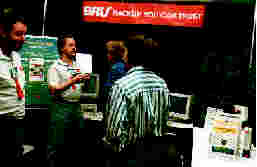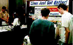 Linus Torvalds, Cyrus Durgin, and Phil Hughes (holding SSC's popular new T-shirt).