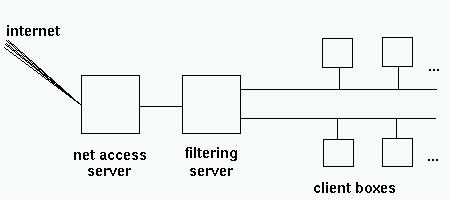 I'm writing this article after a couple of weeks of messing around getting our local school network hooked up to the net. Our problem was similar, I guess, to that of many schools: how do you give students' boxes access to the net, but restricting both certain types of content and certain services altogether (IRC)?