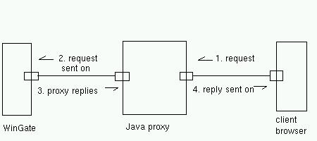 So a request emanating from a client box goes into the filter, and is forwarded to the net access. The WinGate proxy does its stuff, and replies to our local client - but this message is routed back off to our ISP ... and the client gets no reply.
