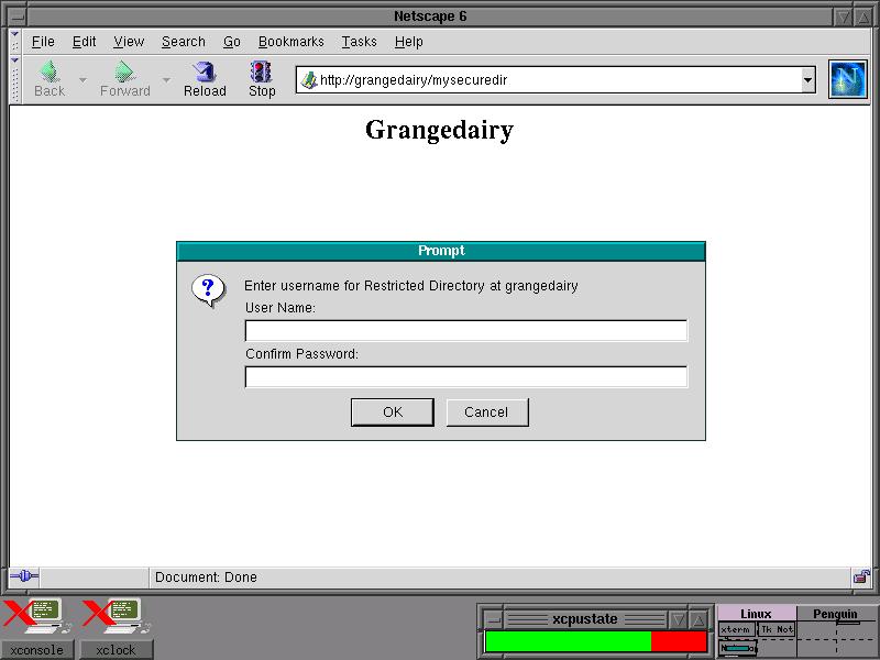 The final part to my Apache tutorial is how to set up and create "secure directories", i.e. those that require user authentication before they are loaded. You will have noticed earlier that in my listing examples of Aliases, there was one for "/admin". This is in fact a secure directory.