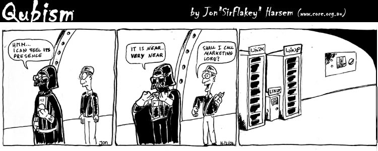 Jon is the and creator of the Qubism cartoon strip and current Editor-in-Chief of the CORE News Site. Somewhere along the early stages of his life he picked up a pencil and started drawing on the wallpaper. Now his cartoons appear 5 days a week on-line, go figure. He confesses to owning a Mac but swears it is for "personal use".