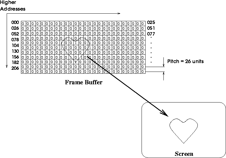 Before we look at the details of how that happens, we need to understand frame buffers. Frame Buffers are also called video buffers or frame RAM and usually reside on the VGA card ( experts please bear with me and ignore AGP for the moment).
